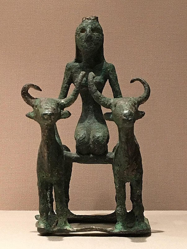 Na civilização de Harappa, a deusa também foi retratada dominando dois tigres. Se você conhece um pouco da cultura indiana, sabe que a Deusa Durga, Mãe do Universo, é comumente retratada sentada sobre um tigre.
